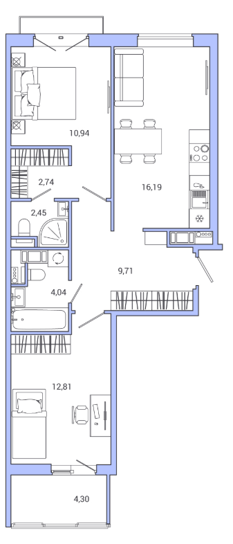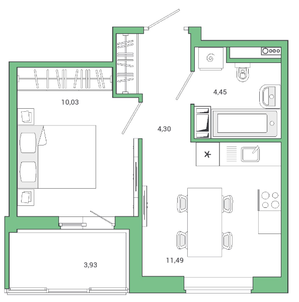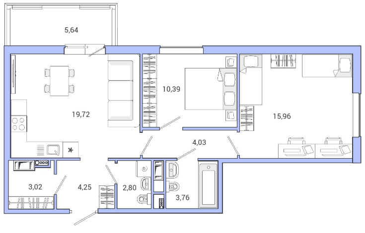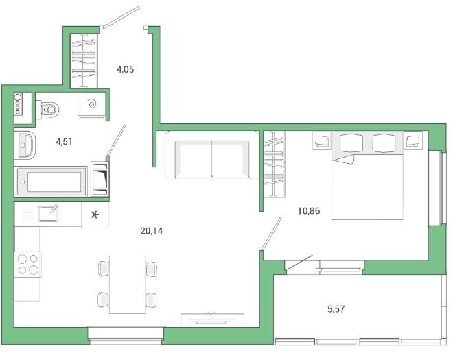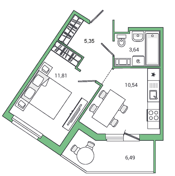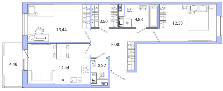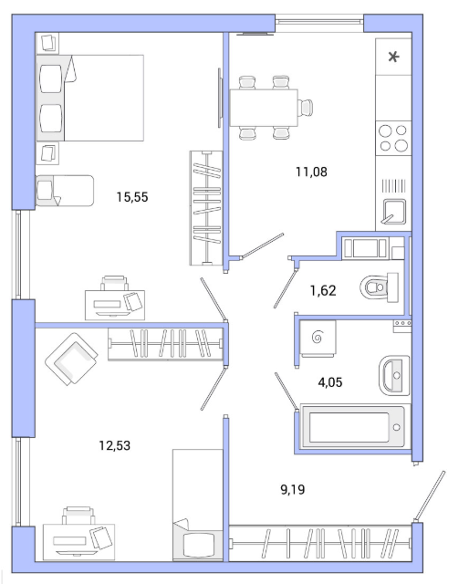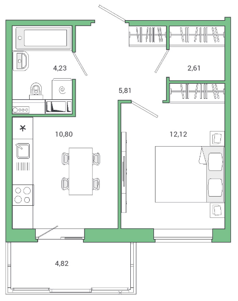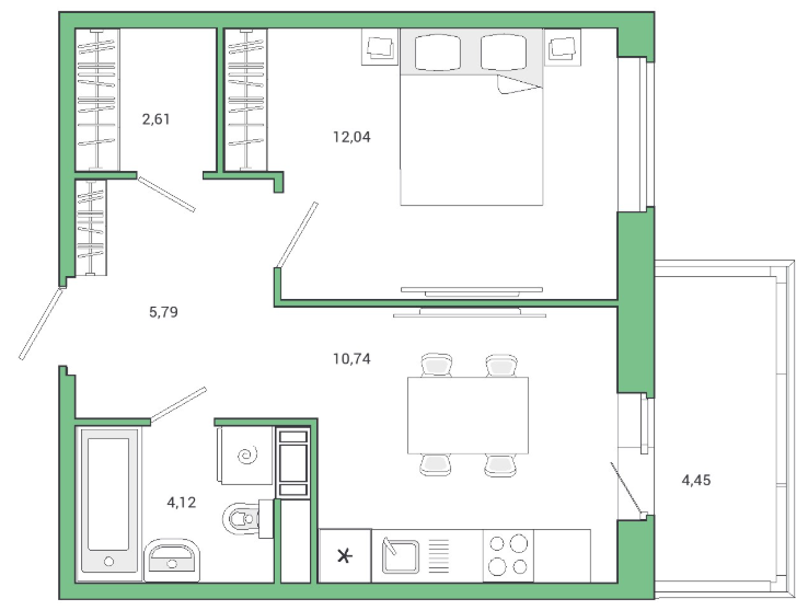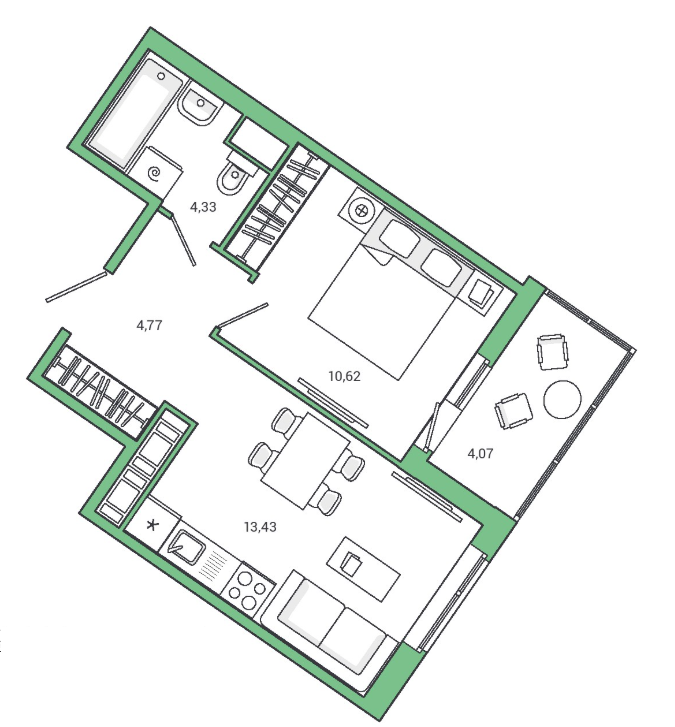 Покупателям предложены различные варианты планировок: от однушек площадью 26 кв. м до трехкомнатных с 20-метровой кухней. Студии есть только в первом корпусе. В квартирах проведено панорамное остекление, есть французские балконы, застекленные лоджии с выходом через распашные двустворчатые двери, ванные комнаты с окнами.