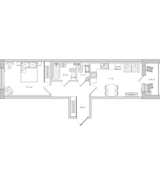 Жилье предложено от 30 до 103 квадратных метров. Есть особые форматы: