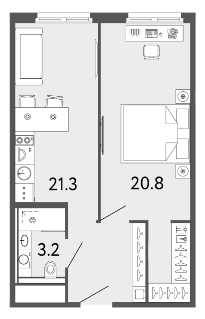Однокомнатные апартаменты (1 апартаменты, 1 планировка)