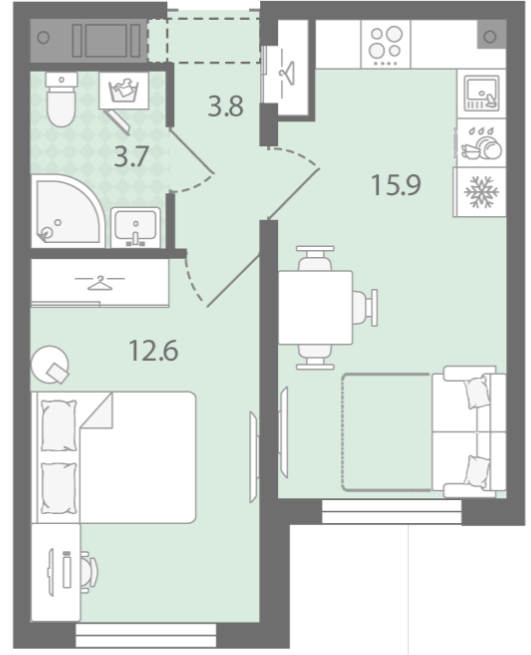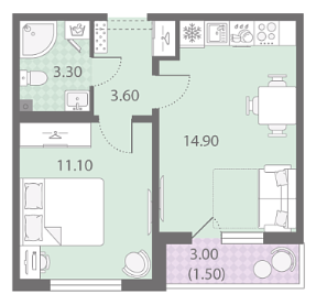 Однокомнатные квартиры (20 квартир, 18 планировок)