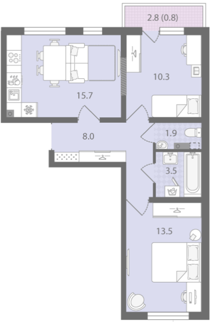 Двухкомнатные квартиры (10 квартир, 8 планировок)