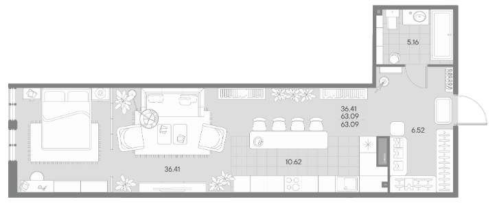 Однокомнатные квартиры (1 квартира, 1 планировка)