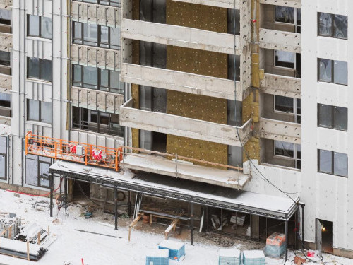 - Ведутся работы по устройству вентилируемого фасада, 3 секция;