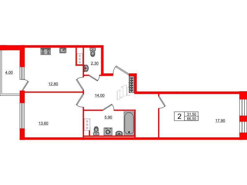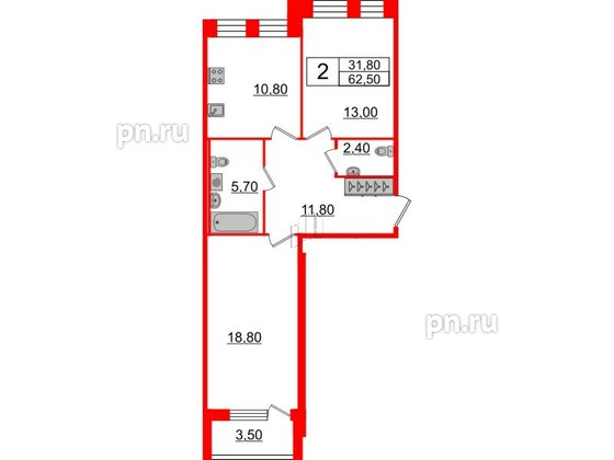 Двухкомнатные квартиры (3 квартиры, 3 планировки)