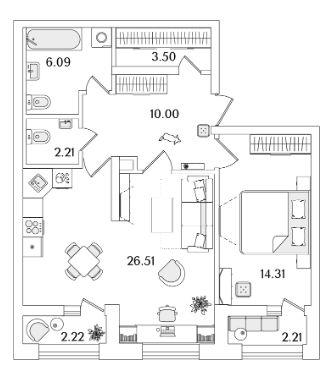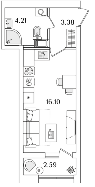 Однокомнатные квартиры (1 квартира, 1 планировка)