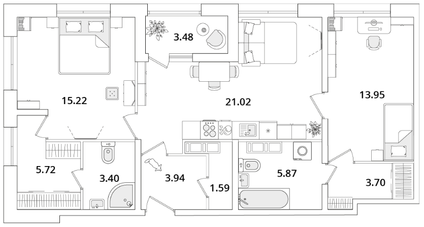 | 113.1 м2 | 54.79 | 22.68 | 13 этаж | Сдана | 4 корпус 4 корпус | 332 482 a/м2 | 37 603 714 руб |