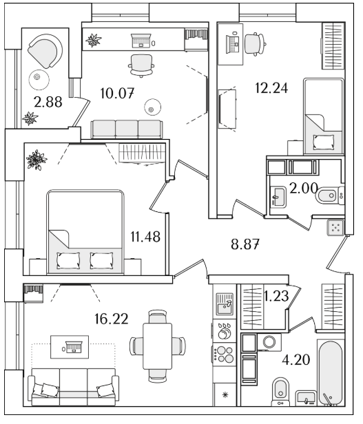 Двухкомнатные квартиры (10 квартир, 10 планировок)
