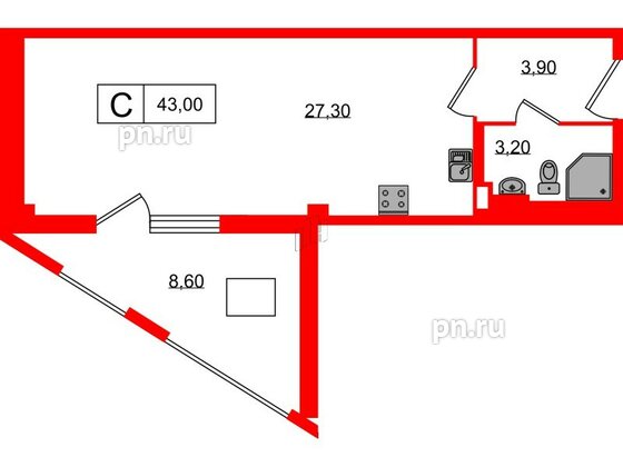 | 43 м2 | 27.3 | 3 этаж | Сдана | 216 279 a/м2 | 9 299 997 руб |